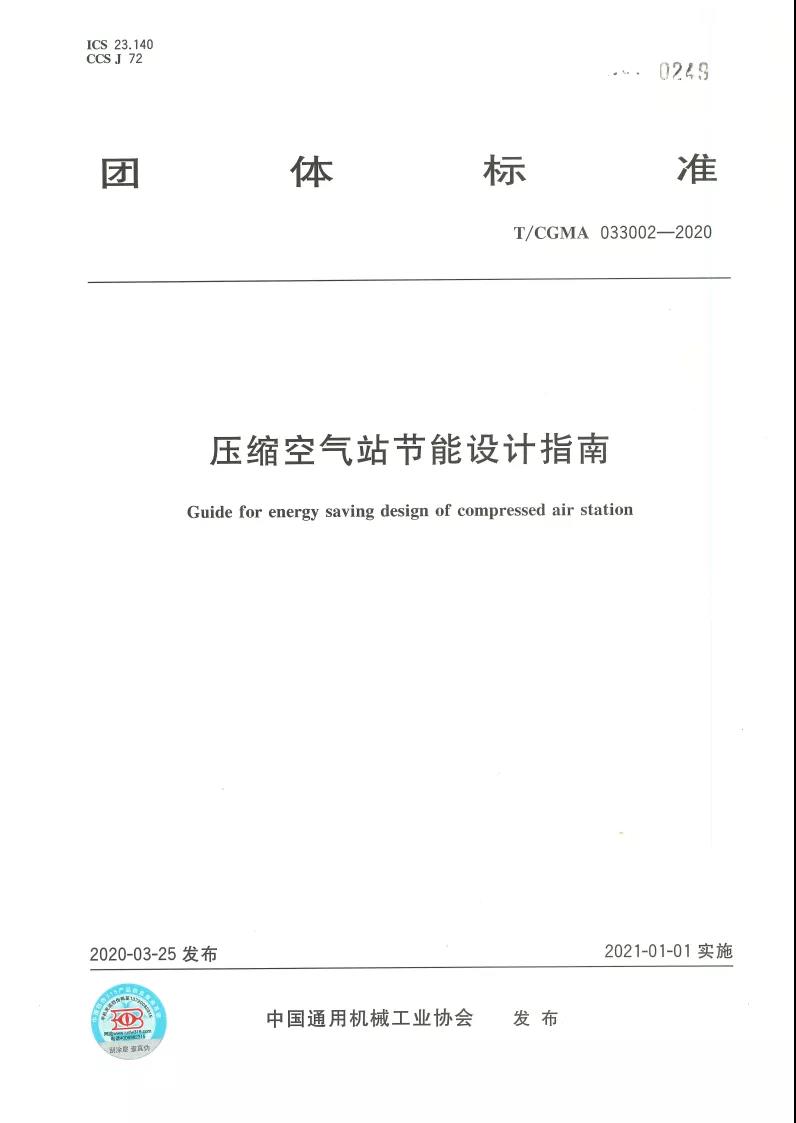 2、热烈祝贺理事长单位杭州哲达科技股份有限公司参与起草的《压缩空气站节能设计指南》团体标准正式发布。